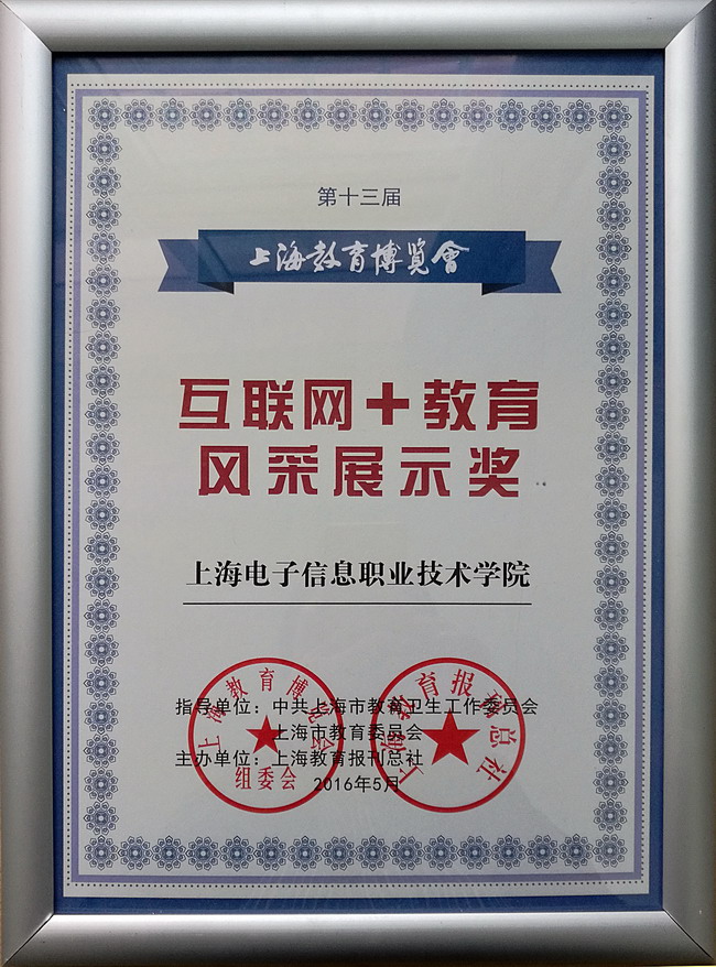 5月18日,学院在参加的“2016第十三届上海教育博览会”上荣获 “互联网+教育风采展示奖”。