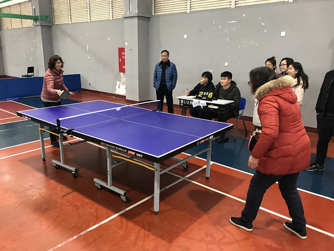 为丰富我校教职工的业余文化生活,增强广大教职工的身体素质,推进校园文化建设,2019年1月4日举行“迎新春”教职工乒乓球团体友谊赛在室内运动场举行,本次活动由校工会主办、公共基础学院分工会承办,共来自10个分工会的60余名教职工参加。