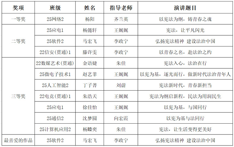 作为一堂生动鲜活的法治教育实践课,本次演讲比赛不仅为学生搭建了展示自我、交流学习的平台,更以“以赛促学、以学促用”的方式,有效激发了全校学生学习宪法、尊崇宪法、维护宪法的内生动力,进一步厚植了校园法治文化土壤。未来,学校将持续深化宪法法治教育,引导广大青年学子将宪法意识内化于心、外化于行,以实际行动践行宪法精神,为法治中国建设贡献青春力量。(供稿单位:马克思主义学院)